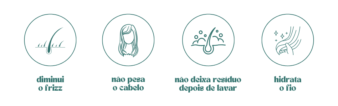 diminui o frizz | não pesa o cabelo | não deixa resíduo depois de lavar | hidrata o fio (VAI SER FOTO DE ICONE)